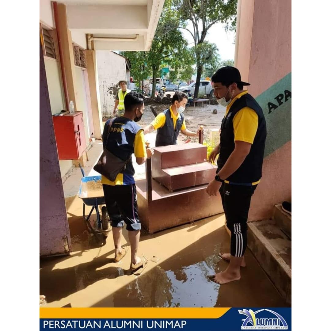 Wakil Persatuan yang juga Pengerusi Persatuan Alumni UniMAP turut memberikan sedikit sumbangan kepada salah sebuah keluarga pelajar UniMAP yang terlibat dalam banjir tersebut. Difahamkan masih terdapat lagi pelajar dan alumni yang terkesan dan memerlukan bantuan akibat banjir kilat yang berlaku telah merosakkan banyak barangan rumah dan juga timbunan lumpur yang tebal memerlukan masa yang lama dan kos pembersihan yang tinggi.